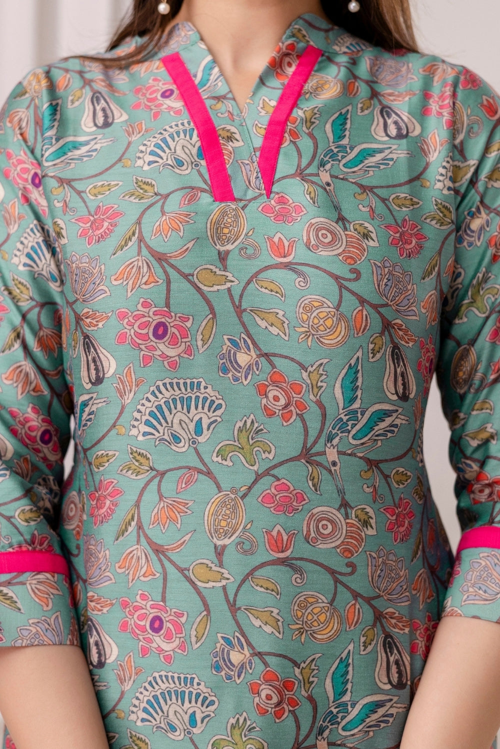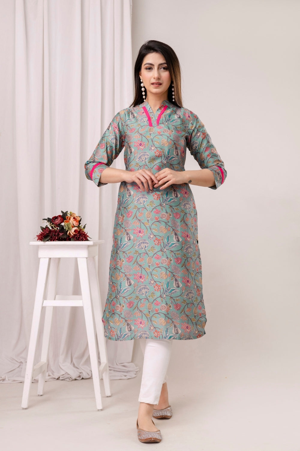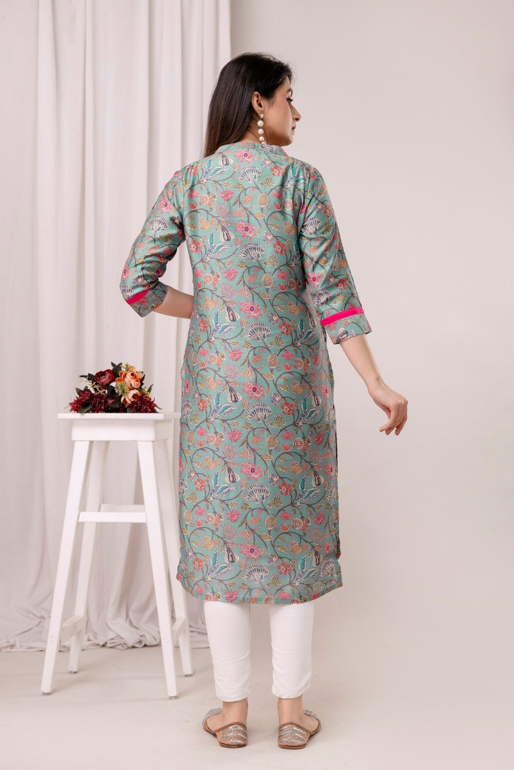 Elevate your everyday elegance with this charming Chanderi kurta, featuring a delicate floral buta print in soothing pastel tones.