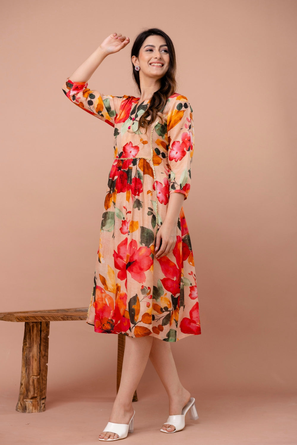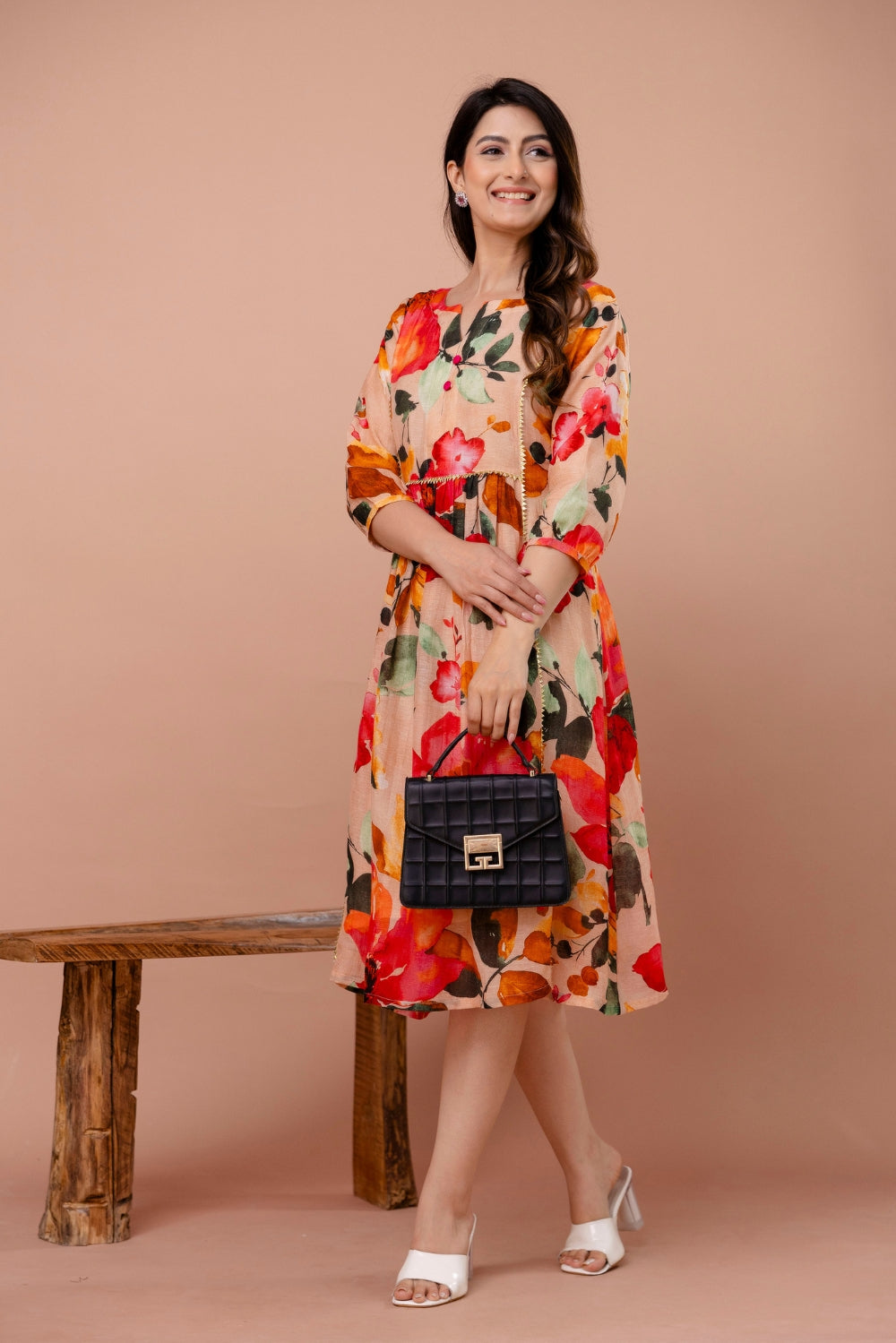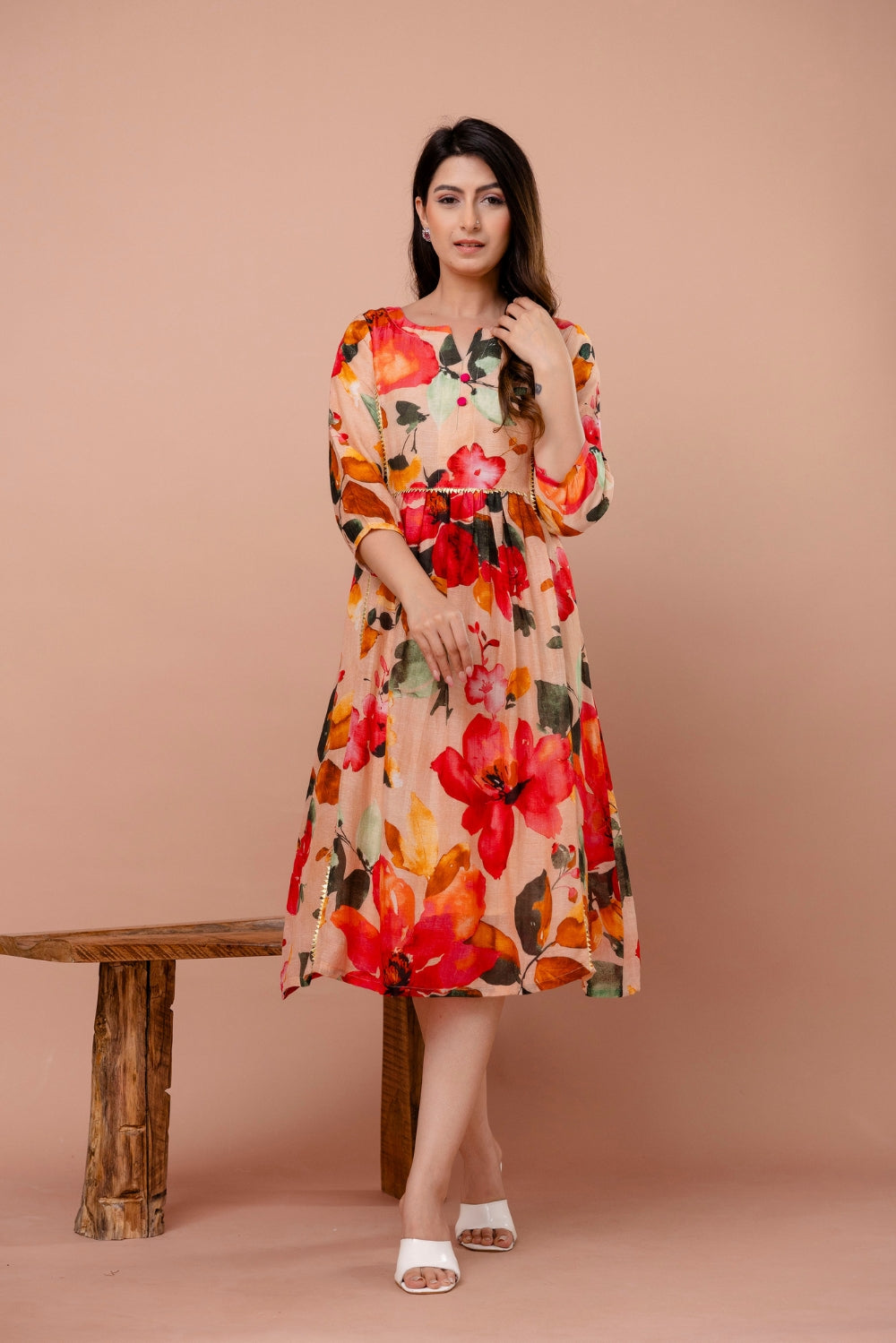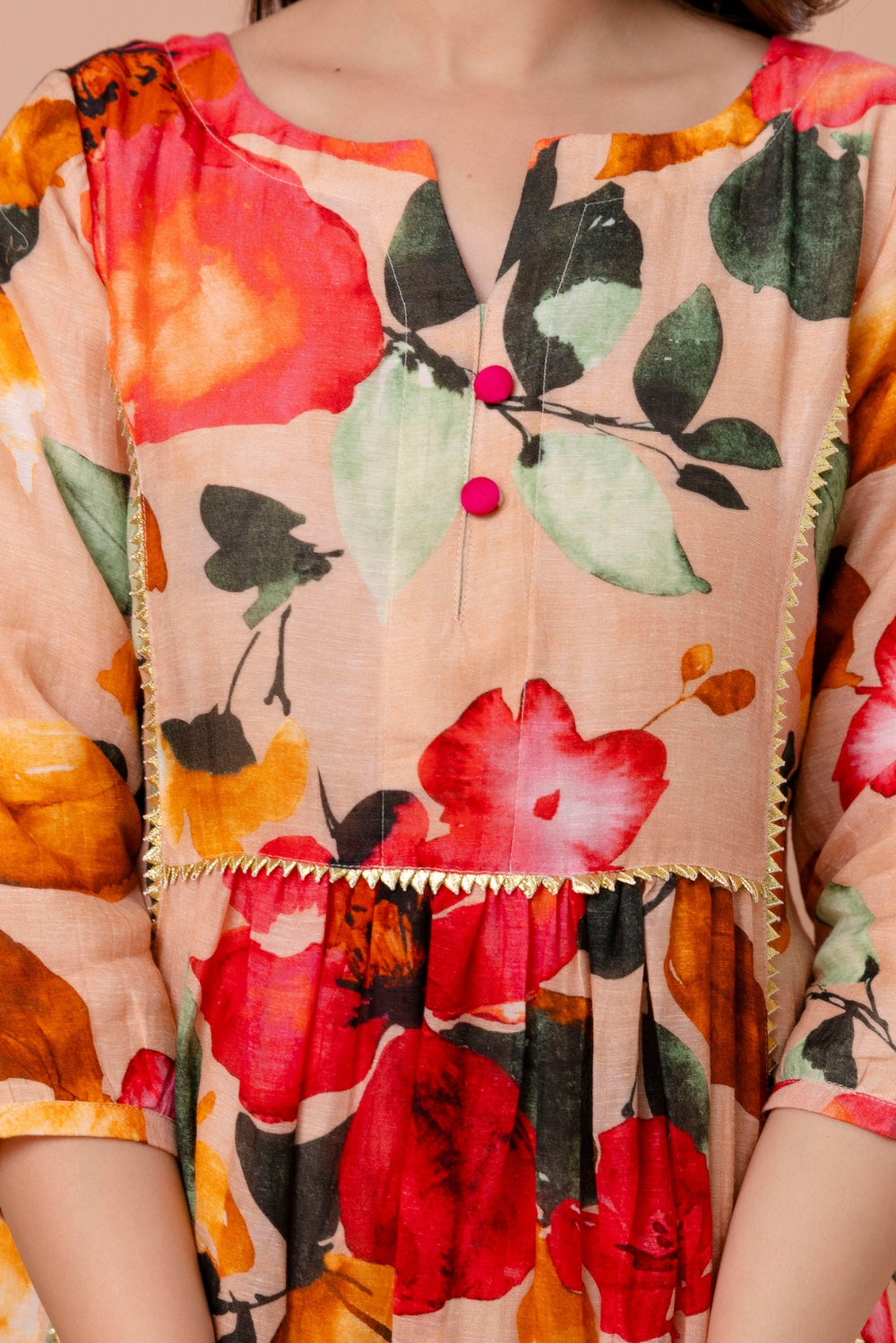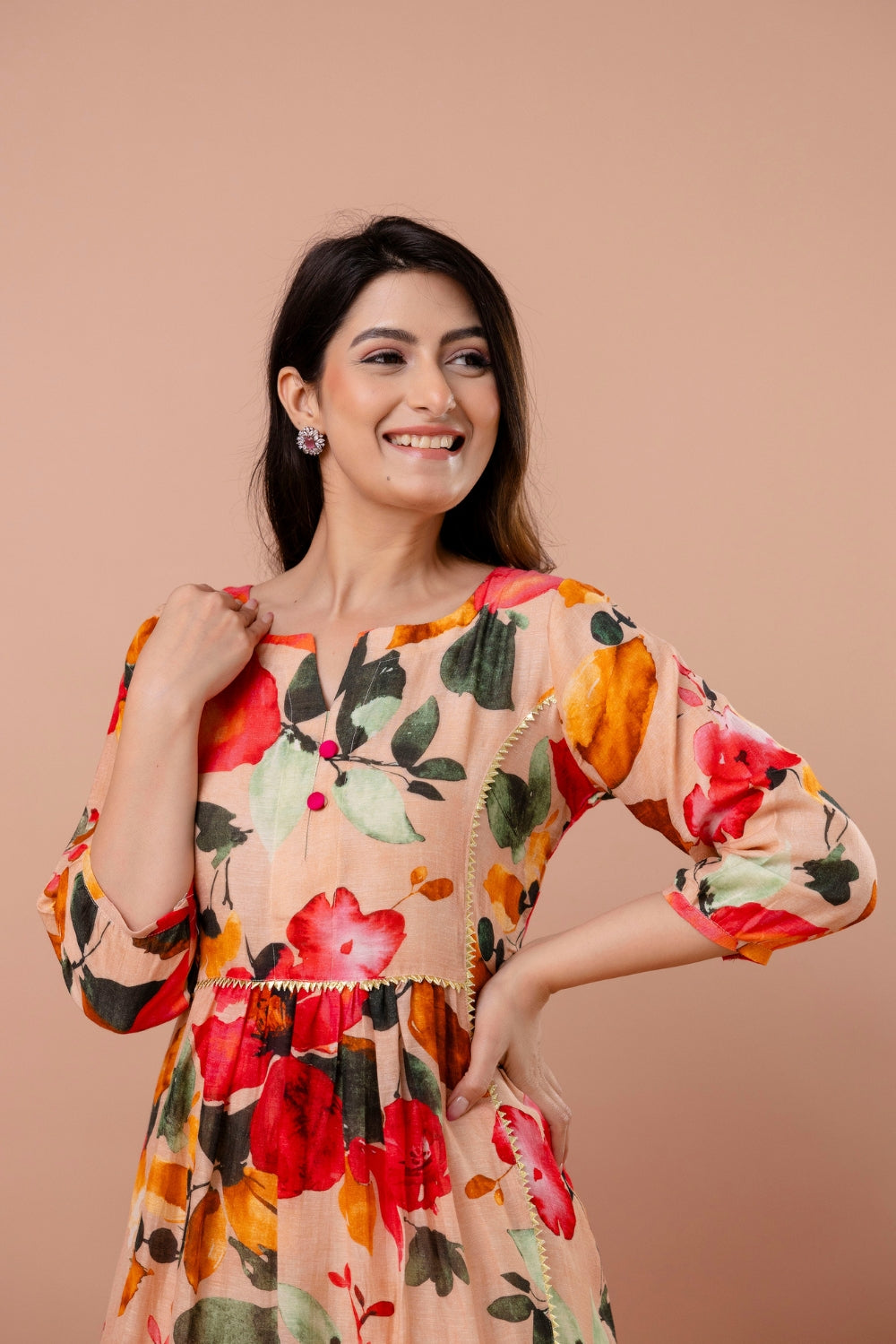Adorned with delicate gota detailing on the yoke, this silhouette brings together grace and tradition with a contemporary charm.
