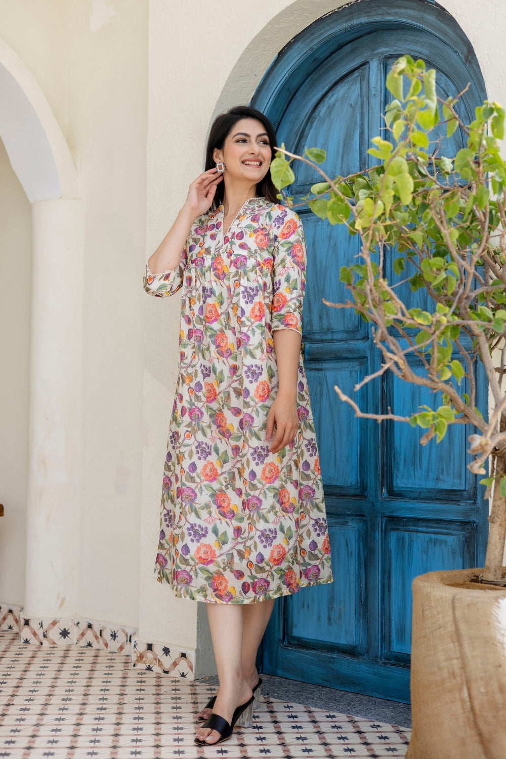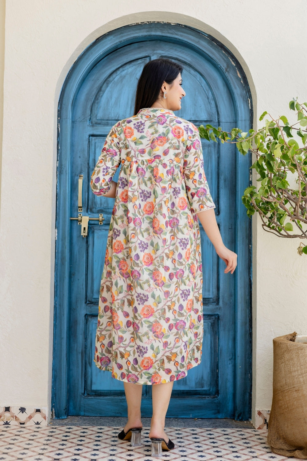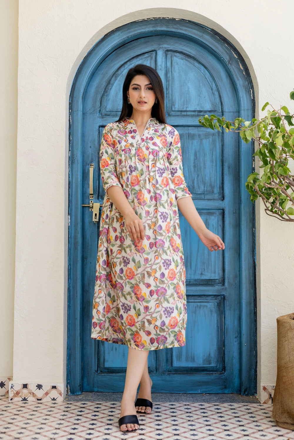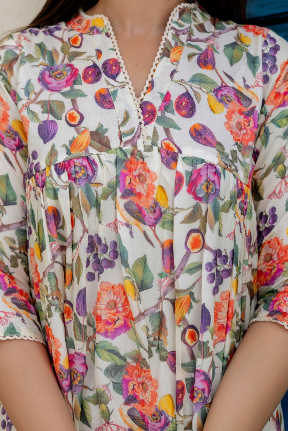 Fresh, feminine, and effortlessly breezy — this floral printed mul kurta is a celebration of soft pastels and vibrant blooms.