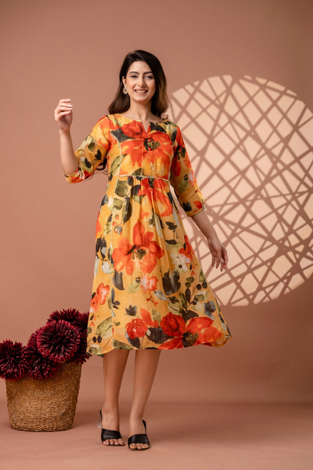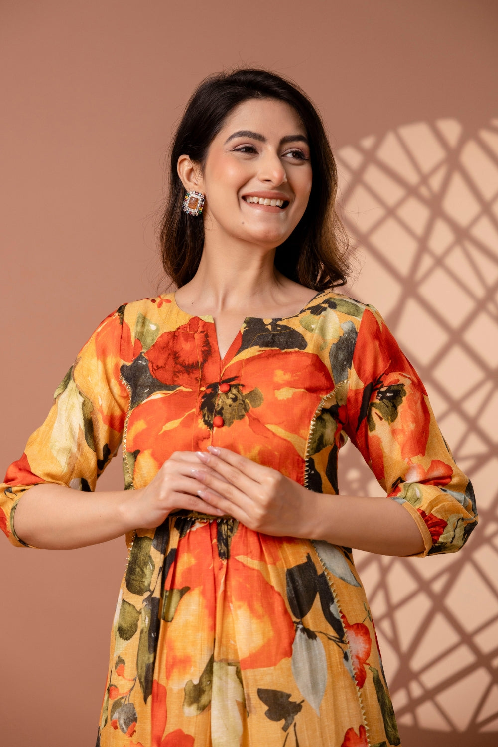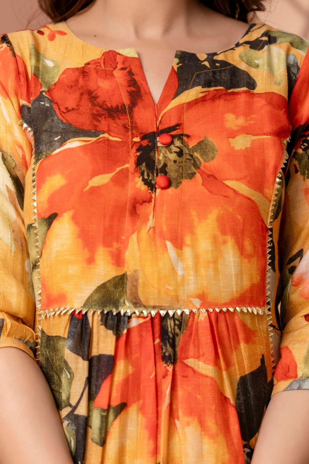 Adorned with delicate gota detailing on the yoke, this silhouette brings together grace and tradition with a contemporary charm.