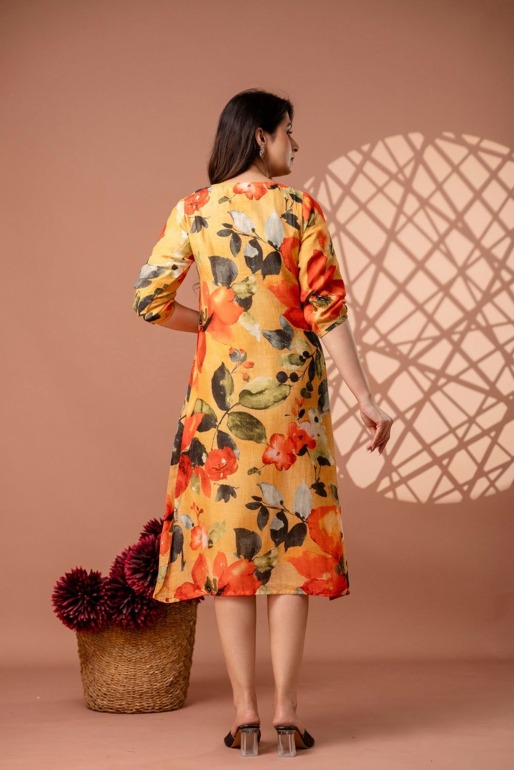 Yellow linen georgette with a soft shimmer and breathable feel.