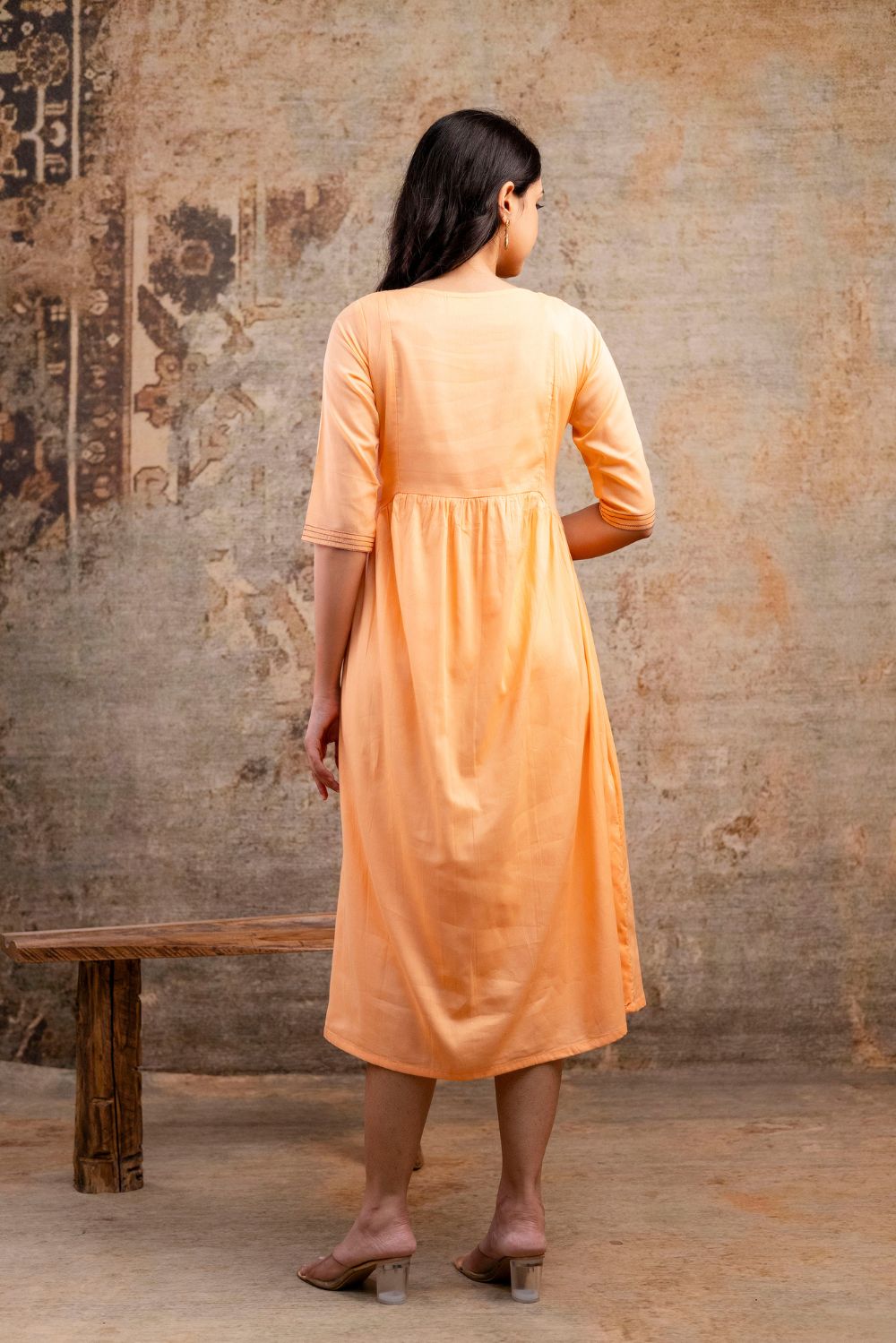 Simple, stylish, and effortlessly comfortable — this peach cotton dress is a breezy staple for everyday wear.